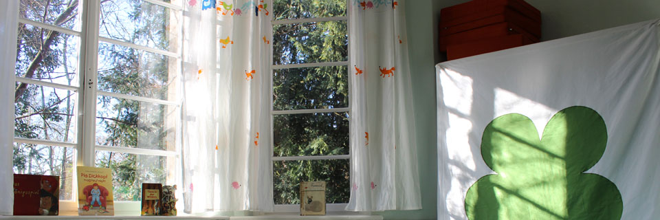 Unser Ruheraum mit seinen großen Fenstern ist eine Oase, die die Kinder zum Kuscheln und Lesen einlädt. Eine wichtige Rückzugsmöglichkeit bietet er vor allem den jüngeren Kindern, die im Trubel des Kindergruppenalltags mal verschnaufen müssen. Hier haben sie einen geschützten Bereich und Vorrang vor anderen stattfindenden Spielgeschehen.